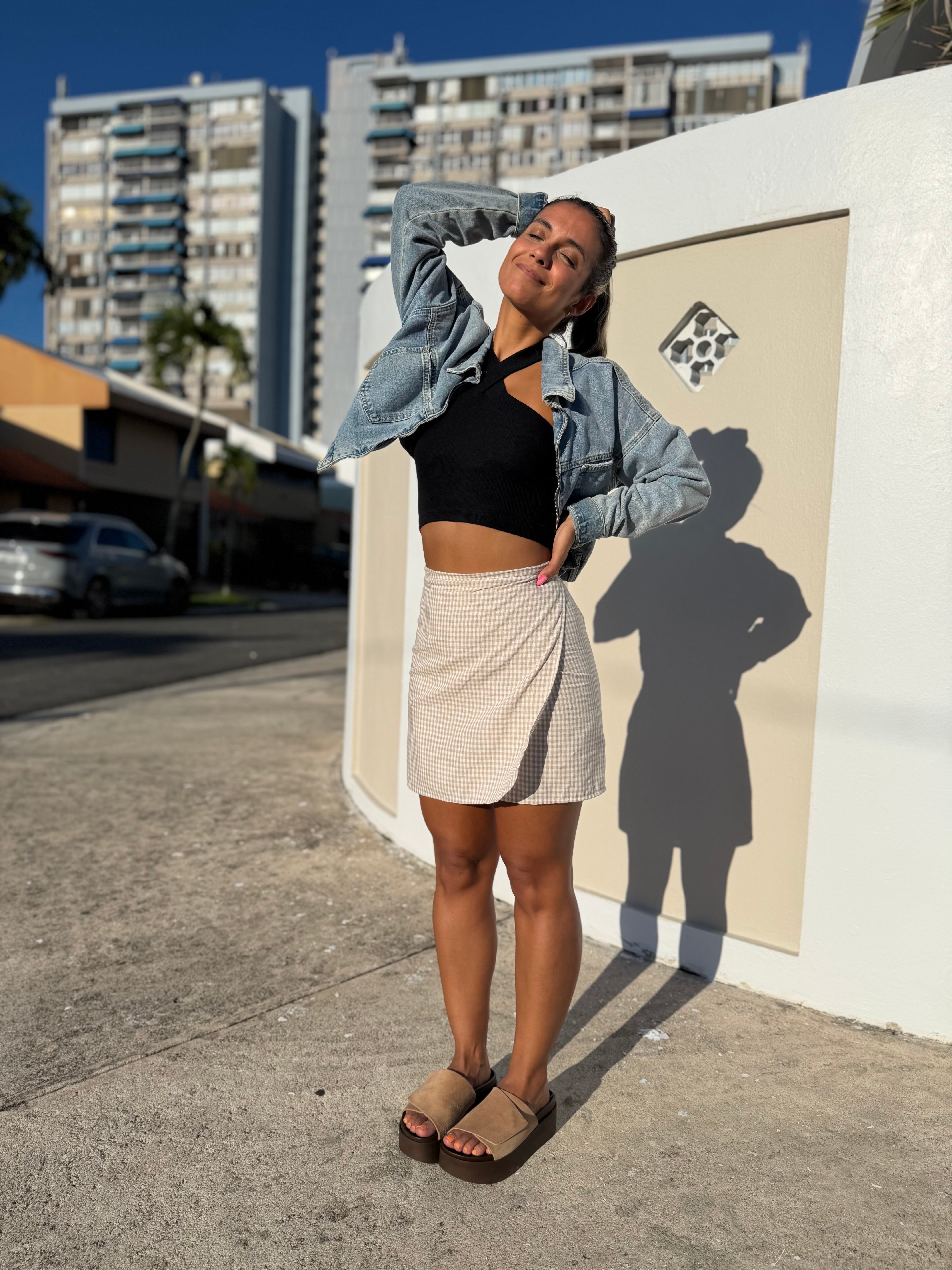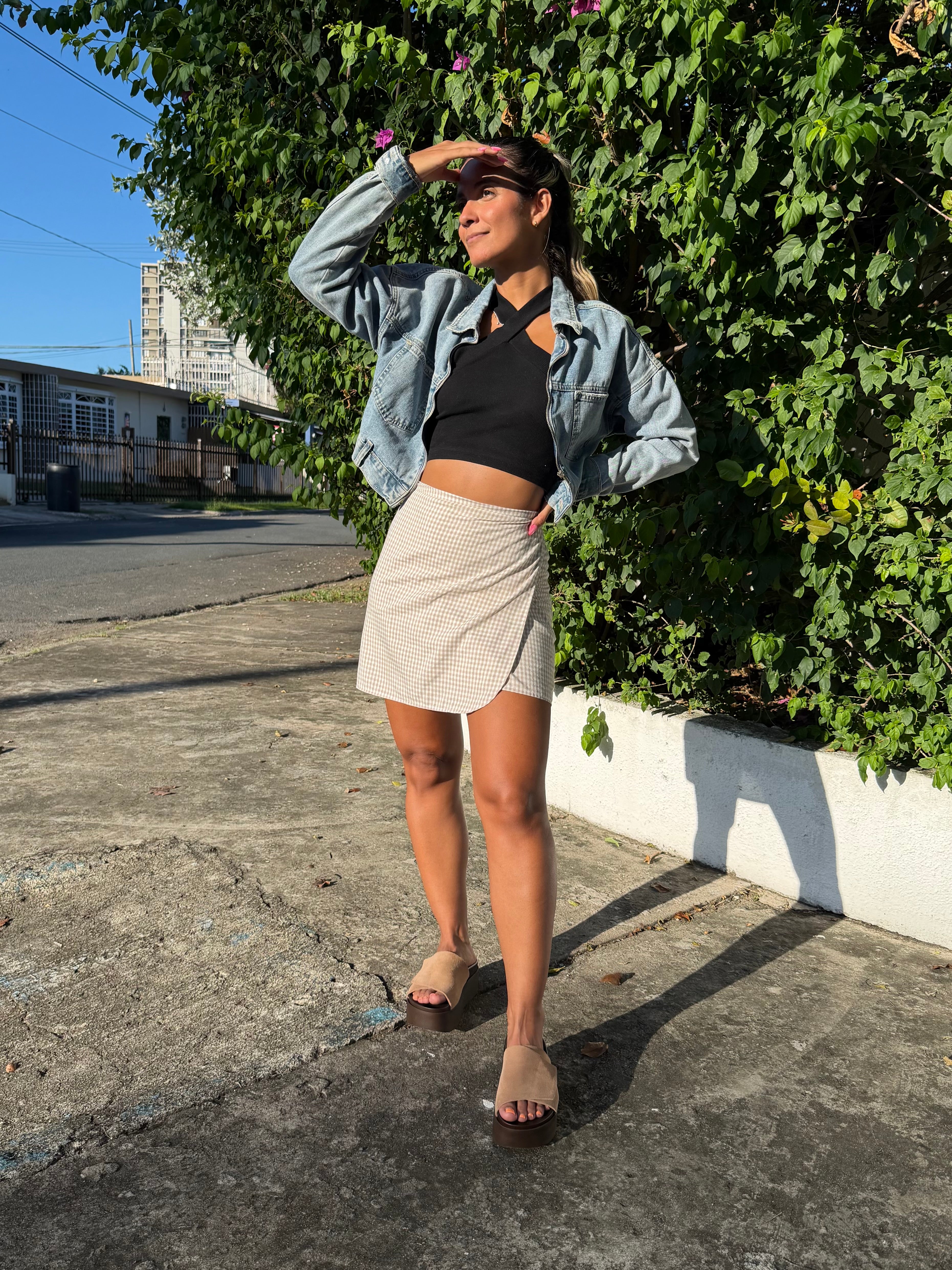Beige Gingham Wrappy Skirt